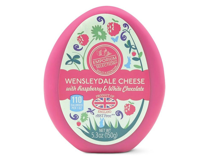What can you expect from the Emporium Selection Easter cheese line at Aldi? If you like your cheese with a hint of fruit and a subtle splash of chocolate, the Wensleydale Cheese with Raspberry and White Chocolate is a must-have. This candy-like cheese comes in a pastel egg-shaped container that’s almost as sweet as what’s inside.