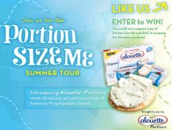 Fans of Alouette Cheese can follow the Portion Size Me Summer Tour on Facebook (facebook.com/alouettecheese) beginning on June 12 for the chance to win exciting prizes.