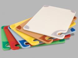 Saf-T-Grip® Cutting Boards are double-sided, color-coded cutting boards that help prevent cross contamination for HACCP compliance. The NSF-certified boards also enhance employee safety, with an integrated anti-slip grip.