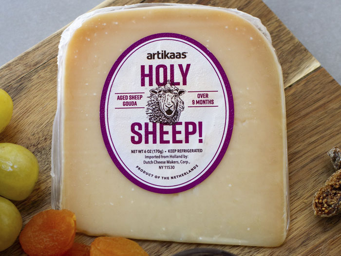 GARDEN CITY, N.Y. — Artikaas, imported exclusively by Dutch Cheese Makers, introduces their new cheese named Holy Sheep, an aged Gouda made from 100% sheep’s milk.