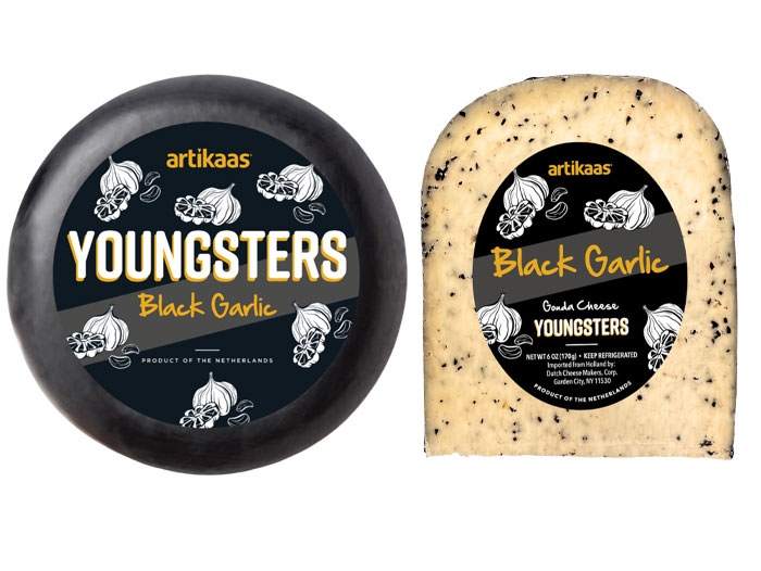 Garden City, NY — Artikaas, exclusively imported from the Netherlands by Dutch Cheese Makers, is thrilled to introduce the latest addition to its Youngsters line: Black Garlic Gouda. Aged to perfection for 4-6 weeks and crafted from premium Dutch cow’s milk, this young Gouda is infused with black garlic, delivering a fusion of creamy, savory, and subtly sweet flavors. This marks the 16th product in the popular Youngsters line, known for its creative and approachable flavors.