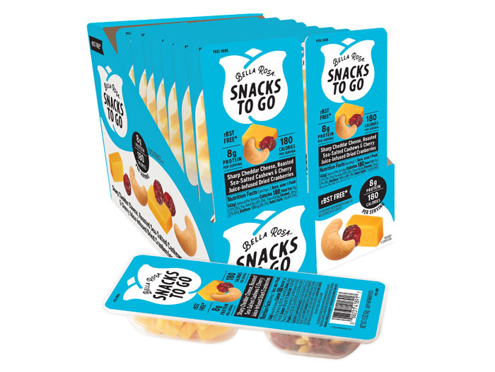 New to the Bella Rosa line, and also debuting at the Summer Fancy Food Show, is a pair of snack format products, aptly named Snacks to Go. Offered in two flavor combinations, each tray offers superior quality all-natural cheddar cheese, premium sea-salted roasted nuts and juicy dried cranberries. Snacks to Go will be offered in 16-count display-ready cases. Suggested retail price for each package is $1.33.