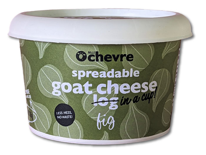 Belle Chevre recently repositioned its spreadable goat cheese as a ‘log in a cup’ and updated its packaging graphics to reflect that change. The brand’s line of products in a 6-oz. resealable cup – available in Fig, Honey, and Original – will start appearing in stores this summer.