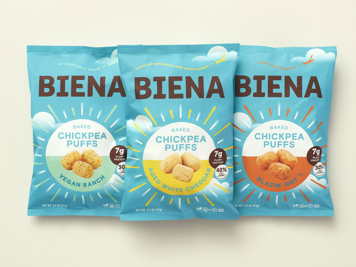Biena offers two product lines, its category-leading Roasted Chickpea Snacks and a new line of Chickpea Puffs, which is already exceeding sales expectations.