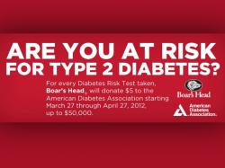 *Boar’s Head will donate $5 to the American Diabetes Association for every Diabetes Risk Test completed online at facebook.com/AmericanDiabetesAssociation from March 27 to April 27, 2012, up to a maximum donation of $50,000.