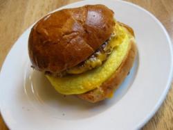 Best of the group is the Chicken Apple Sausage Daybreaker. With is spicy and sweet sausage, cheddar cheese, and white brioche roll, this one was by far everyone's favorite. The sausage is the highlight and adds depth to the flavor along with great texture. 310 calories, 13 g fat.