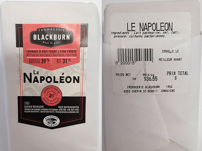 | Fromagerie Blackburn | Le Napoléon – Firm Cheese | Variable weight | Starts with 0 200015 | All units sold up to and including March 26, 2020 |