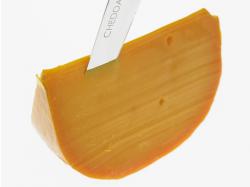 Traditional artisanal wrapped cheddar is always round, with layers of lard and muslin cloth, which aids the cheese in absorbing the flavors of the environment. Turned by hand, it is matured for at least a year, sometimes up to 18 months – only then can it be called aged Cheddar. The industrially produced variety, on the other hand, matures, on average, for just 6 months.