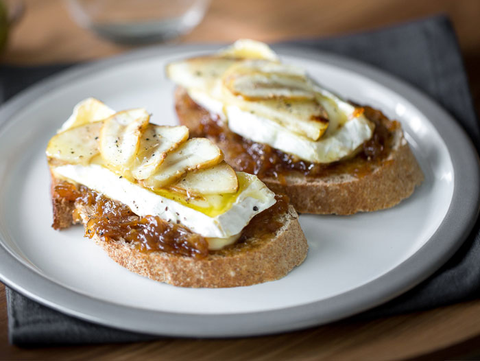 A story in Popular Science attempted to solve the mystery of why melted cheese tastes so good. Their conclusion was that it has to do with mouthfeel. Melted cheese takes on a “creamy texture that people find appealing” says author Daniel Engber, “All the sensations associated with melted cheese—smoothness, gooeyness, and warmth—connote a fatty treat.” Melted cheese doesn’t have to be fatty. A perfect example is the cozy Potato Soup with Pears and Bleu d’Auvergne, just a little crumble of the intense blue cheese adds tons of flavor.