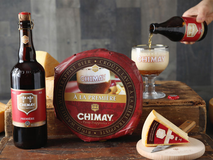 Chimay À La Prèmiere is washed with the most popular Trappist beer brewed on-site at the monastery. The first Chimay beer, “La Prèmiere,” now sometimes known as Chimay Rouge, has been brewed since 1862 and gives the À La Prèmiere cheese a distinctive fruity flavor perfectly balanced tang. The award-winning cheese has a creamy, supple texture and a slight cellar funk.