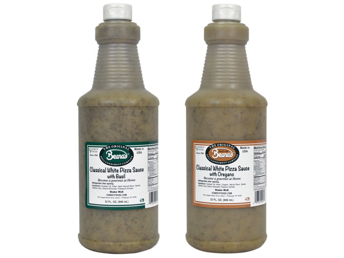 · We offer three varieties of traditional Italian flavors: Garlic Sauce, White Pizza Sauce with imported Oregano, and White Pizza sauce with fresh dried Basil in a non-separating format. All three of these are ready to use and do not need to be shaken before dispensing. This creates in-use consistency for great tasting pizzas and flatbreads across the board.