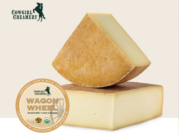 Wagon Wheel: Experience the liquid gold rush from the hills of San Francisco with Wagon Wheel, a versatile, snackable cheese at its glory when melted down and forged into your favorite meal. Born from the sunshine of California’s rolling golden hills, Wagon Wheel is our most versatile and snackable cheese. At room temperature, it’s approachable and delicious. When melted, we call it Liquid Gold. Designed by chefs for chefs (originally on Zuni Cafe’s pizza menu), Wagon Wheel is a washed rind cheese crafted from organic cow’s milk and aged for a minimum of 75 days as 15 lb wheels.
