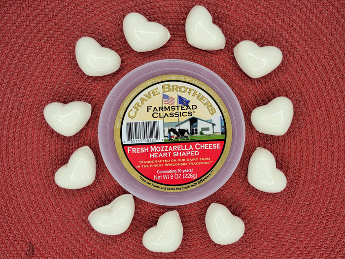 WATERLOO, Wis.– It is said love can be celebrated through a wonderful meal and Crave Brothers Farmstead Cheese is taking love to a new level with the introduction of its heart-shaped fresh mozzarella – just in time for your Sweetest Day celebrations and upcoming holidays. The heart-shaped mozzarella in brine is freshly produced at the family-owned farm in Waterloo, Wisconsin.
