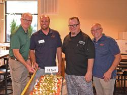 Waterloo, WI — On Thursday, August 9, Chef Jason Dunn of Lewis Station Winery in Lake Mills, WI, proved that sometimes bigger can be better, as he and four assistants built the U.S. record Caprese Salad. The 32-foot-long version, made with fresh Wisconsin ingredients, included 35 pounds of award-winning Crave Brothers Farmstead Classics Fresh Mozzarella. Lewis Station Winery’s giant caprese salad also featured 34 quarts of locally sourced tomatoes, 3 pounds of locally grown basil (four different types), 2 quarts of olive oil, and 1 quart of balsamic vinegar.