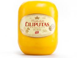 It is 7.5-13 cm in height, 7-8.5 cm in diameter and 0.4-0.7 kg in weight. The cheese is handmade and ripened naturally, offering a very mild and milky flavour. The cheese is made from pasteurised cow's milk, by coagulating the milk and then processing the coagulum, wrapping the cheese mass in woven cotton napkins and pressing it in the traditional cylindrical moulds. The cheese is matured for at least a month by means of internal microflora and surface microflora. Liliputas is traditionally covered with smooth wax layer to preserve freshness.