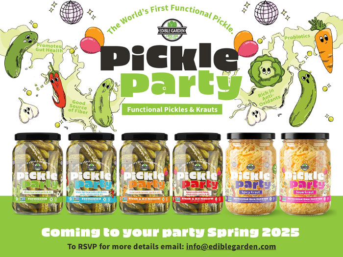 BELVIDERE, NJ — Edible Garden AG Incorporated (“Edible Garden” or the “Company”) (Nasdaq: EDBL, EDBLW), a leader in controlled environment agriculture (CEA), locally grown, organic, and sustainable produce and products, announced that preorders are now coming in for its highly anticipated Pickle Party product line—the world’s first functional pickle. Being introduced at Foodtown and Lincoln Market locations across the NY/NJ Metro region, Pickle Party arrives just ahead of the summer grilling season, delivering bold, fresh and fermented, refrigerated pickles that support gut health and deliver exceptional flavor.