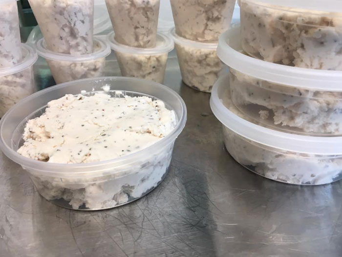 The couple currently produces chèvre (pronounced “SHEV-ruh” or “shev”) and feta cheeses, in a variety of flavors and sell their product at area farmer’s markets. They hope to eventually build a cheese cave in order expand the types of cheeses the creamery produces.