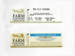 The second label will have Farm Country Cheese House logo on the far left hand side, and the product name (Raw Milk Cheddar) written in white over a light blue banner this label will have the “Use By Date” on the back, it will not have a Julian Date. The “Use By Date” dates are between October 28th 2015 and December 5th 2015. This will be packaged in 8oz blocks and 5 lb. loafs.