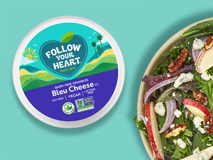 Follow Your Heart Dairy-Free Bleu Cheese Crumbles is the first-to-market dairy-free blue cheese crumbles product to hit retail shelves. This latest crumble innovation follows the company’s wildly popular Dairy-Free Feta Crumbles, which debuted last year. They are luxurious, creamy, and crumbly, just like the real thing. Delicious in salads, tarts and crostini, or sprinkled on a pizza, this delightful blue cheese comes in 6 oz. tubs and is available this month at Whole Foods Market, Stater Bros., and at select Acme and Safeway stores in the Mid-Atlantic and Northeast.