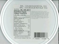The "Sal-Couscous Royale" (Royal Couscous Salad), is also sold clerk-served from deli-counters in various weight containers with or without a label or coding. Consumers who may have purchased Royal Couscous Salad between November 17 and December 1, 2011 and are unsure if they have the affected product are advised to check with their place of purchase.
