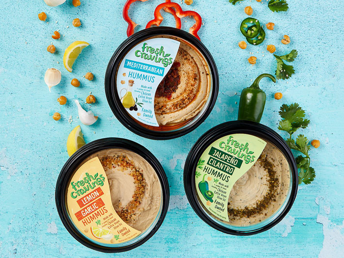 PHOENIX — Fresh Cravings, the family-owned, Arizona-based snacking brand expands its line of chilled dips, with the addition of three new innovative hummus flavors: Jalapeño Cilantro, Lemon Garlic, and Mediterranean. These new flavors are now available at Walmart nationwide, in the deli section, and join the Fresh Cravings Hummus lineup of Honey Jalapeño, Everything Bagel, Roasted Red Pepper, Roasted Garlic, Spicy Red Pepper, and Classic.