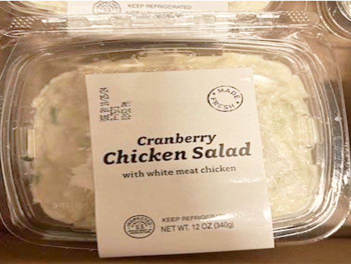 • 12-oz. clear plastic packages containing “Cranberry Chicken Salad with white meat chicken” with a use-by date of 10/25/24.