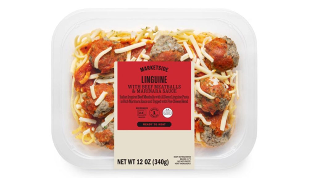 • Sold at Walmart: 12-oz. clear plastic tray packages labeled “MARKETSIDE LINGUINE WITH BEEF MEATBALLS & MARINARA SAUCE” with “best if used by” dates SEP 22, 2025; SEP 24, 2025; SEP 25, 2025; SEP 29, 2025; SEP 30, 2025; and OCT 01, 2025. The product bears establishment number “EST. 50784” or “EST. 47718” inside the USDA mark of inspection. [view labels]
