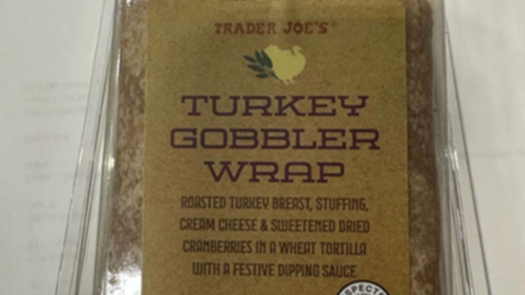 • 10-oz. clear plastic clamshell packages containing “TRADER JOE’S TURKEY GOBBLER WRAP” with “BEST BY SEP 16, 2025.”