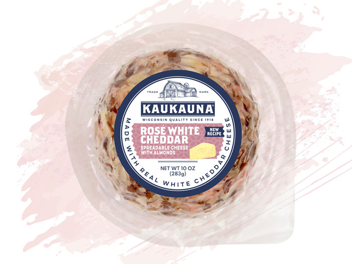 Kaukauna’s new 10 oz. cheese ball is made with quality aged white cheddar cheese blended with a refreshing semi-sparkling rosé wine, which contains sweet notes similar to White Zinfandel. Each ball is covered in a delicious crunchy almond coating for a delightful combination of unique flavors and texture unlike any other. The new product brings cheese lovers everywhere a new way to experience their favorite flavors each and every day.