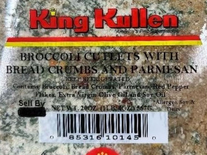 Consumers who have purchased 20-ounce packages of “King Kullen Broccoli Cutlets with Bread Crumbs and Parmesan ” are urged to return them to the place of purchase for a full refund. Consumers with questions may contact the company at 203-773-0795 Mon – Fri (9am-3pm EST) or info@gracieskitchens.com.