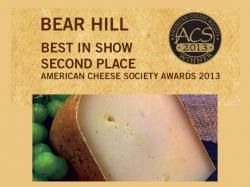 • Bear Hill went on to take Best in Show Second Place at ACS. Overall Best in Show went to fellow-Vermont company Cellars at Jasper Hill for its Winnimere and third went to Bleu Mont Dairy of Wisconsin in a tie for its Bandaged Cheddar and Big Sky Grana.