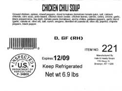 - 6.9-lb. bags containing “CHICKEN CHILI SOUP” with an “Expires:12/09” date.