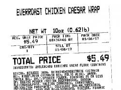 The recall applies to: Everroast Chicken Caesar Wrap (UPC: 72036-95828) that was prepared in the deli department of various Harris Teeter supermarkets in multiple states. All code dates.