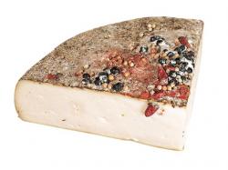 What it is • A pasteurized goat’s milk cheese from Bordeaux, France made by Jean D’Alos Affineurs (cheese agers). Once formed, the 12-pound wheels are washed in brine, allowed to become firm enough to be sent from the Loire Valley to Bordeaux, where they are seasoned with herbs and spices such as savory, thyme, coriander, juniper berries, fennel, white peppercorns and cayenne pepper. The cheeses are then aged for several months before shipping. The paste is ivory in color with a few holes and pliable. The cheese is reminiscent of mushrooms and anise. There’s a slight tang and cruciferous notes. Eat the rind if you’re in the mood for crystallized bits.