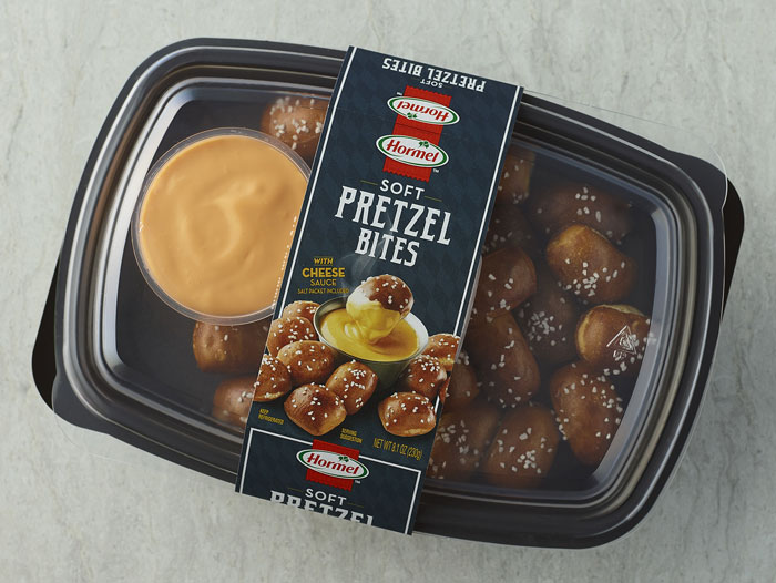 “The Hormel® pretzel bites and cheese tray comes at a perfect time,” said Emily Klotz, brand manager. “Pretzels are one of the up and coming snack trends we see in the marketplace. Soft pretzel bites are increasing on restaurant menus across the United States and we are excited to bring this restaurant trends into our consumers’ homes.”