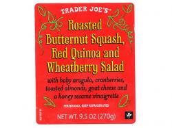 Trader Joe's Roasted Butternut Squash, Red Quinoa & Wheatberry Salad with "use by date" of 7/28/2012 and 7/30/2012 comes in a 9.5 oz clear plastic container. The "use by date" is marked on a sticker on the front of the package. The recalled product was distributed from 7/23/12 to 7/26/12 to Trader Joe's stores in Arizona, California, Nevada, New Mexico, Oregon and Washington. No other Trader Joe's stores are affected by this recall.