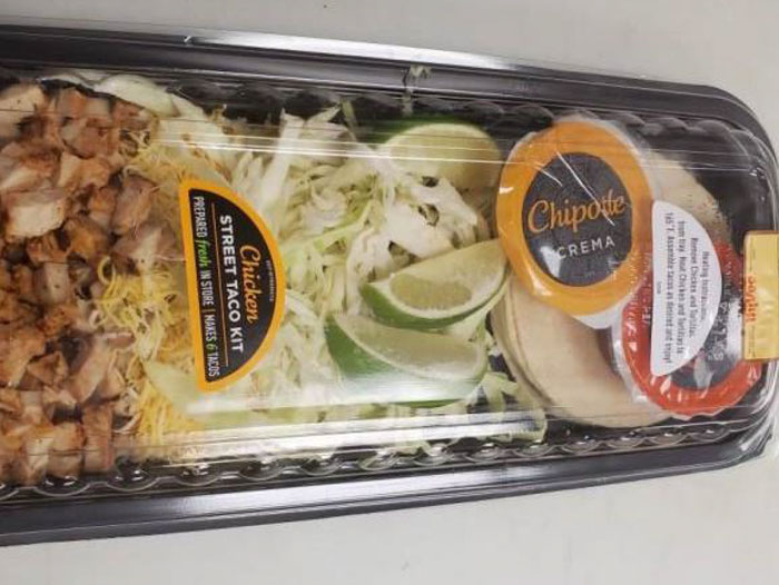 The voluntary recall includes the Hy-Vee Chicken Street Taco Kits which were sold in deli cases in black plastic trays with clear plastic lids (see picture below) with the UPC 02-82503-09993 and a “Best If Use By” date prior to May 27, 2021 (located on top of label).