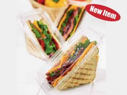 The Sandwich Wedge container’s upscale design promotes more attractive product merchandising that highlights the quality of its contents. The perimeter seal design of the containers provides increased product shelf life and better protection of its contents.