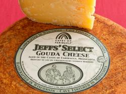 Jeffs' Select is the result of a collaborative effort between Jirik and long-time friend Wisconsin Master Cheesemaker Jeff Wideman. It is Wideman who makes the cheese, which is then sent to Faribault for aging. Unlike typical Goudas aged in cold temperatures, this American original is aged in the warm and humid environment of the caves. The result is a full-bodied flavor with a classic European nuttiness and a hint of caramel. Its annatto-rubbed rind gives it its vibrant orange color.