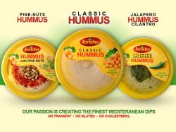 LOS ANGELES, CA — What does Jericho have that other big names don't have? They have the healthiest possible product available. Jericho Foods Company consists of three lines of authentic Mediterranean Dips: 18 flavors of hummus, 8 variations of eggplant spread, and 7 robust garlic spreads. Rather than using fillers such as oil, flour, and butter, Jericho products are garbanzo bean and tahini based. They are mixed in small batches and taste tested through a 3 step process where, if the product isn't up to par, it never reaches the shelf, thus bringing you creamy, old-world recipes that taste like home. Full of Mediterranean flavor, Jericho produces no trans-fat, gluten free, cholesterol free and non GMO kosher spreads.