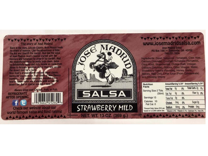 Jose Madrid Salsa in Zanesville, Ohio is voluntarily recalling its Strawberry Mild salsa, packaged in 13oz glass jars, due to an undeclared anchovy allergen.
