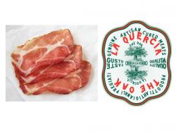 Acorn Spallacia (pronounced spah-LAH-chahh): dry cured pork shoulder. Very similar to prosciutto in eating experience and manner of curing. Sold by the whole shoulder, 4-9 lbs. Skin on, shoulder blade removed. Easy to slice by hand or electric slicer.