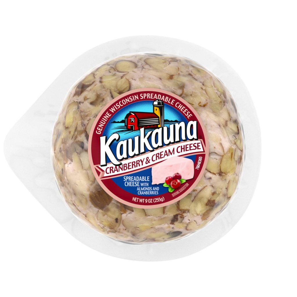 Kaukauna’s Cranberry & Cream Cheese 9 oz. cheese ball is the brand’s first sweet variety – made with rich cream cheese and blended with delicious cranberry juice and dried cranberries to create a sweet and tart flavor that pairs perfectly with graham crackers or as a delectable dessert centerpiece.