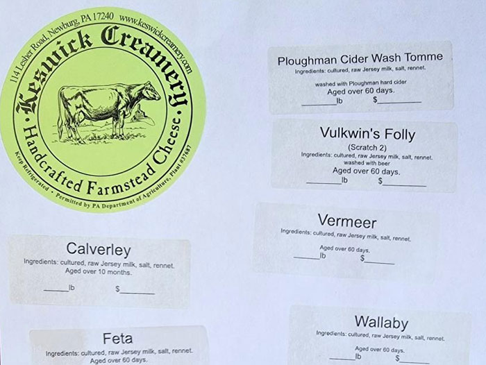 The cheeses will be labeled from Keswick Creamery, with the cheese name on the label.