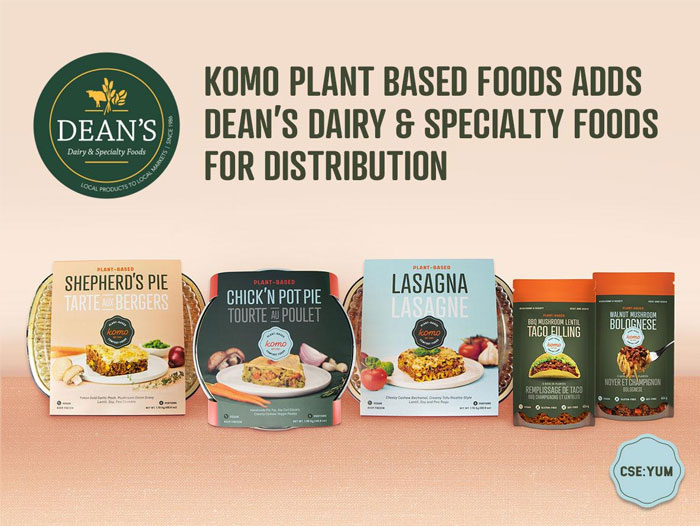 VANCOUVER, BC – Komo Plant Based Foods Inc. , plant-based food company, has started distributing its products through Dean’s Dairy and Specialty Foods and has sent its first shipment of products to Dean’s for distribution in British Columbia.