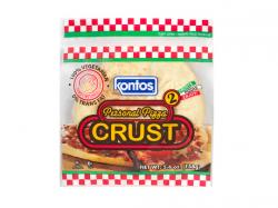 Kontos Personal Pizza Crusts are fully vegetarian and weigh 79 grams. The product’s recommended retail placement is alongside pizza fixings such as bottled pizza sauces and cheeses.