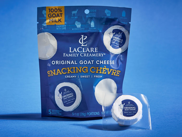 Each snack bag contains five 1-oz. individually wrapped medallions. With 90 calories and 5 grams of protein per serving, LaClare’s signature goat cheese is ideal for grab-and-go lunches or a quick nosh.