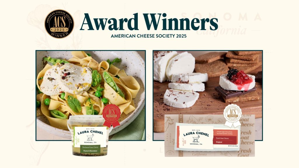 Sonoma, California — Laura Chenel, America’s pioneering goat cheese producer, announces two new national honors at the 2025 American Cheese Society Conference (ACS). Held this year in Sacramento, California, the ACS Conference recognizes the best in artisan and specialty cheesemaking across the Americas.
