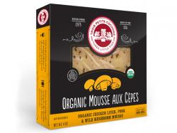 - Organic Mousse aux Cèpes: A mélange of organic chicken liver, organic cèpes, and organic white wine, the new Organic Mousse aux Cèpes is smooth in texture and rich in flavor. It is best enjoyed with a full-bodied fruity red wine with minimal influence of oak or a full-bodied dry red wine with rustic & earthy tones. The Organic Mousse aux Cèpes is available for purchase in 4oz retail packages at specialty food markets nationwide.