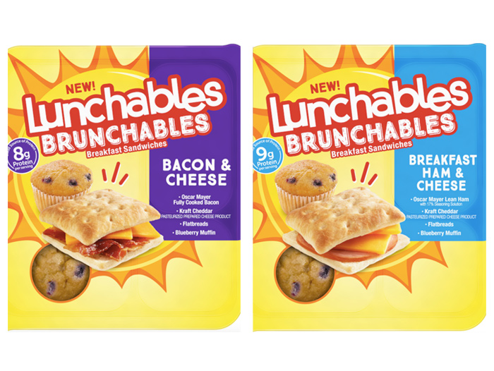 Lunchables Brunchables bring some much-needed fun and innovation to the breakfast table, letting kids (and adults) build their own breakfast sandwiches complete with ingredients like ready-to-eat bacon strips, cheese, breakfast flatbreads and a mini blueberry muffin to top it off.